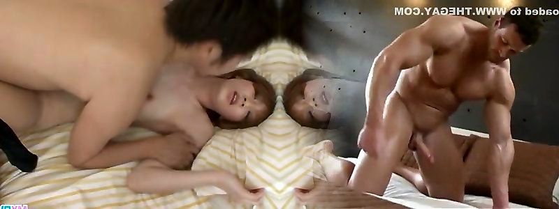 Two Ripped White Studs Give an Irresistible Asian japanase friend mom a Double Cock Treatment