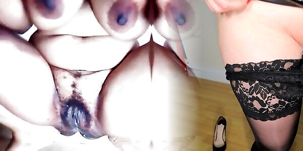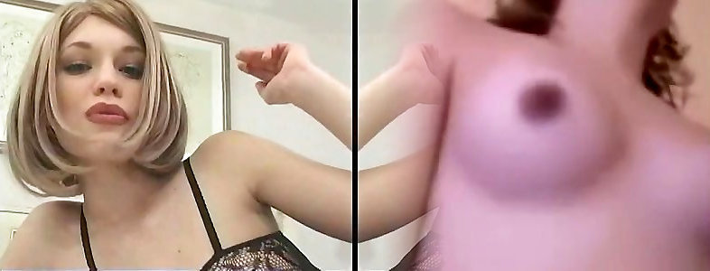 cutie in a short sundress, stockings and high-heeled slippers from comics gets an climax and records a movie report for her bf