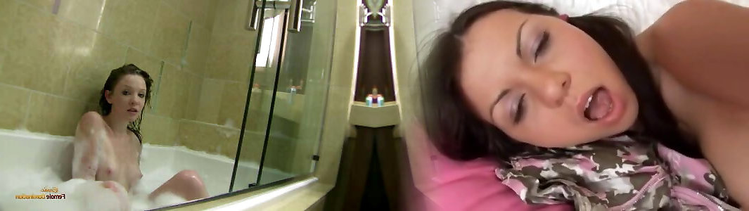 Lovely dark haired ultra-cutie taking a molten super hot douche