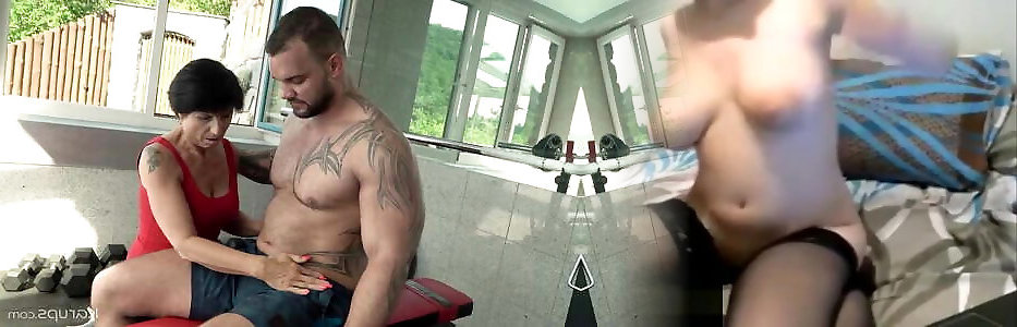 Splendid brunette grandmother ravages young boy in the gym