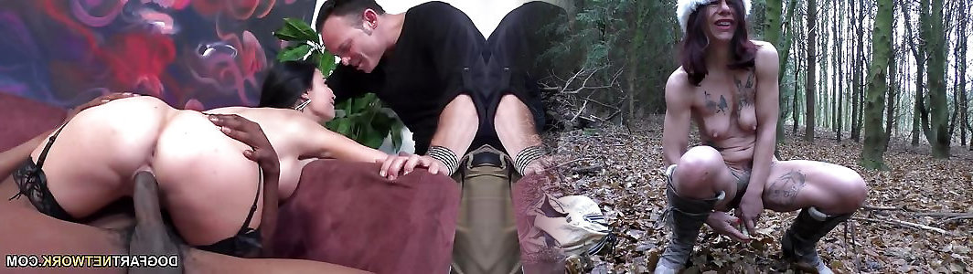 Milf dogging pet slave with collar Jolie drinks jizz