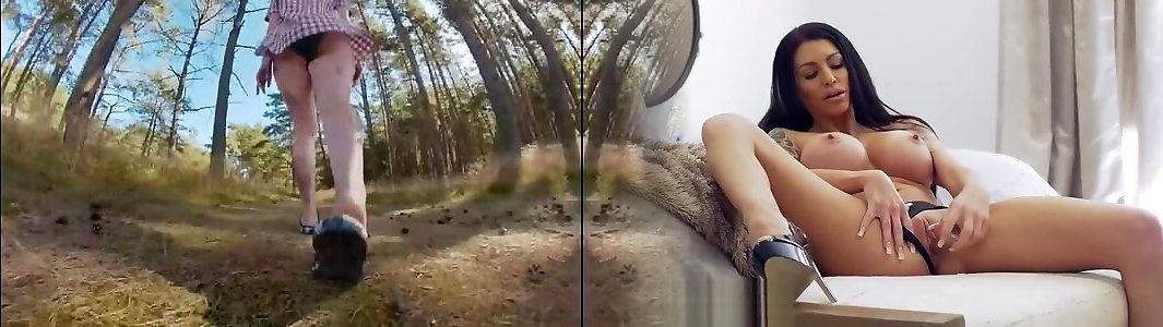 Massive-boobed milf pees as her homie jerks off his stiffy