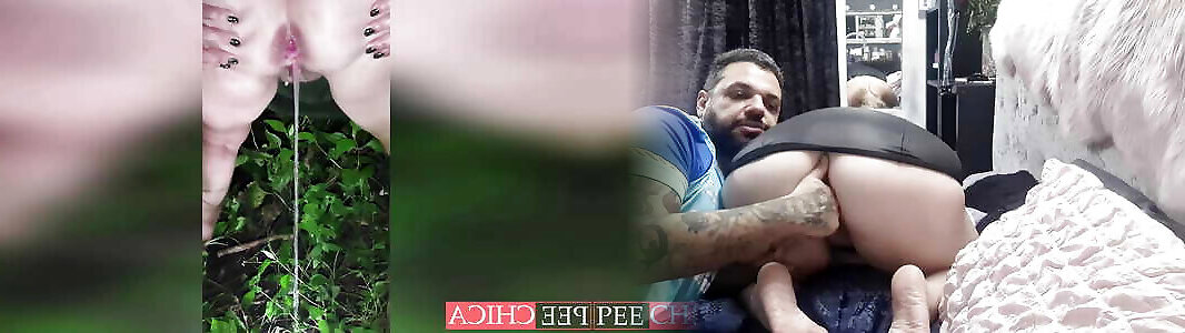 Peeing in her arse fuck hole outdoor