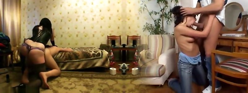 Girl-on-girl Bang-out with string-on in fetish clothes - 2 Mummies