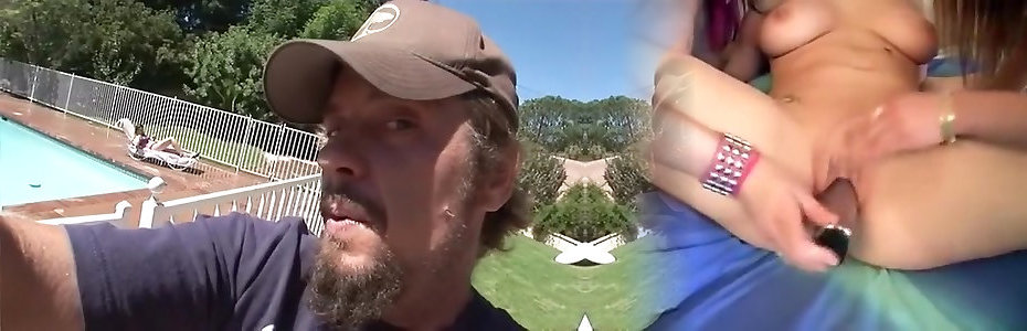 Outdoor dicking by the pool with slutty Scarlett Page & her BF