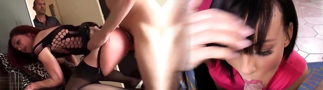 Dark-hued Stockings Four Way MICHELLE B & luca orgasm Bombshell