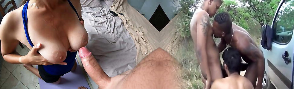 Brown Stepmother catches Ebony Sonny Fapping Off and ends him with Orgy