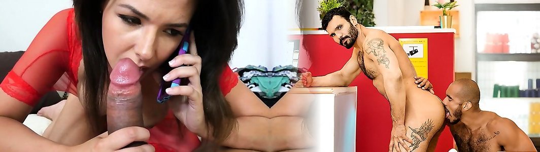 she talks to the cuckold on the phone while her lover kisses her