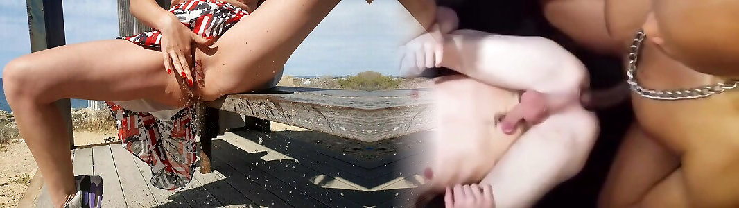 Mischievous pierced stunner squirt on public beach
