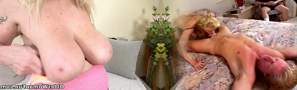 Whorish old blonde riding young dick