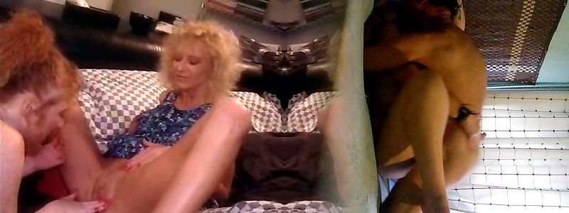Bosomy platinum-blonde Cougar Kylie spying on sexy sister fingering gets pounded stiff by her friend