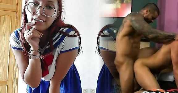 Luxurious school stunner paying for the step dad harrasment with her astounding cootchie