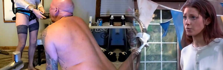 The slave&039;s ass takes the strap-on, and his dick is in a chastity belt. Femdom.