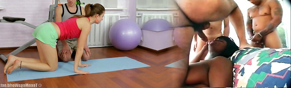 Big-titted teenie gets ass-fuck on pilates ball