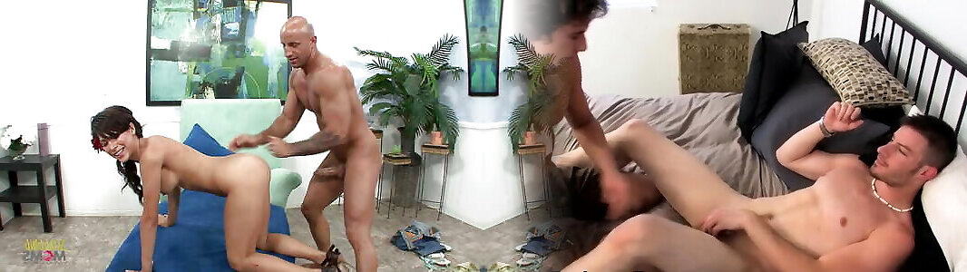 Super-cute Young Asians Stand Behind A Holed teen boys couple And Get Their N