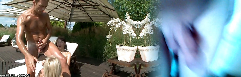 A couple of sizzling teenage call girls satiate one mature wealthy boy outdoors