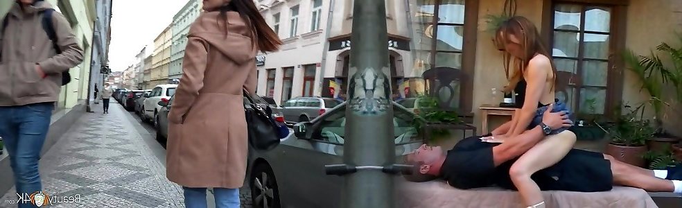 Sunny chaya four fingers is outdoors and has joy by caressing her tasty puss