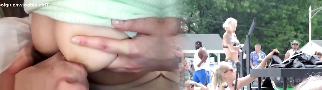 Jacky Fun blonde gal suggest her jugs to a black pole