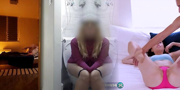 Horny Stepsister Caught Masturbating While Sharing The Bed