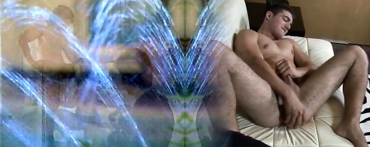 He jerks off manstick and ejaculates on her small bumpers!