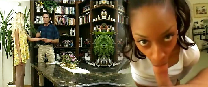 Dark-haired superslut with petite boobies likes the hefty ebony pecker while her spouse watches