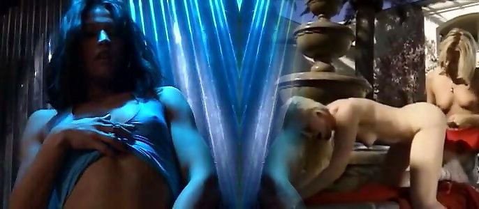 Stunning blondes undress for a lucky small dick guy