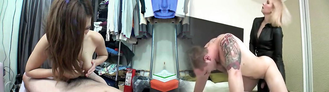 Chinese black-haired in a threeway