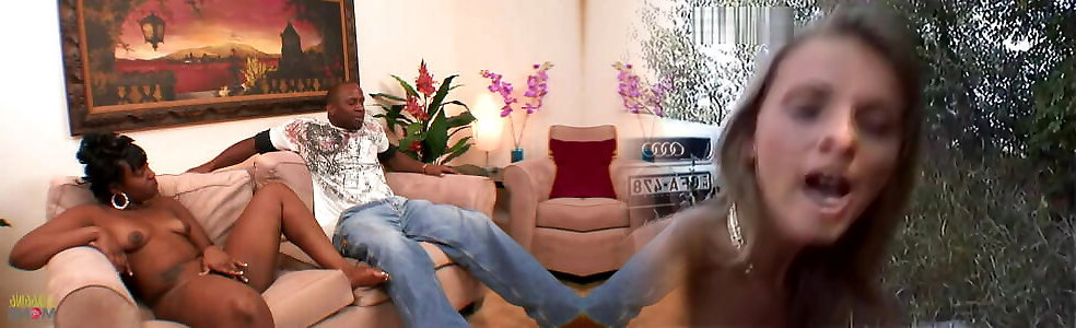 Amateur black schoolgirl takes hold of his gigantic trouser snake and drains