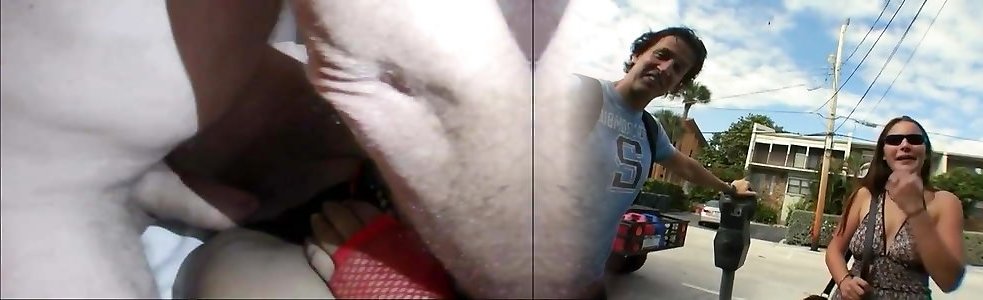 A husband filming the wife at tow hook humping outdoors