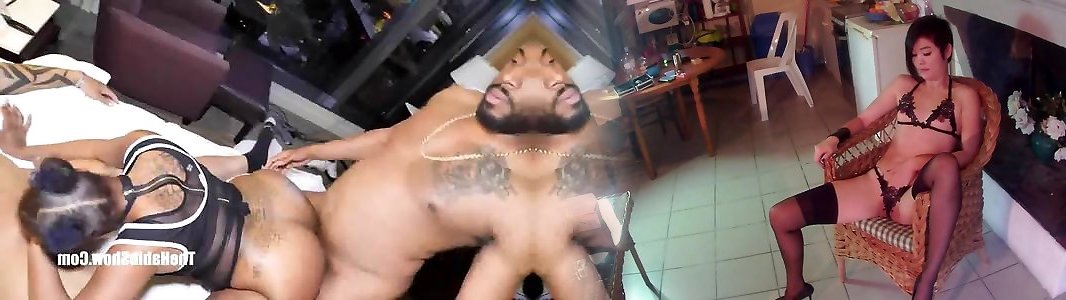 Large plump caboose rides dark-hued man-meat!