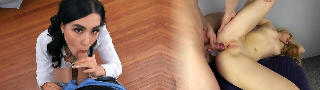 Katerina gets a good-sized pecker to try and blow and gets it push up her backside