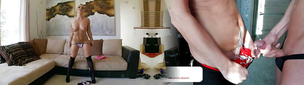 Fiesty platinum-blonde super-bitch takes 2 hard-ons at the same time and plays with them
