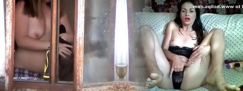 19 you chick with stretched muff lips Milana M is milking by the window