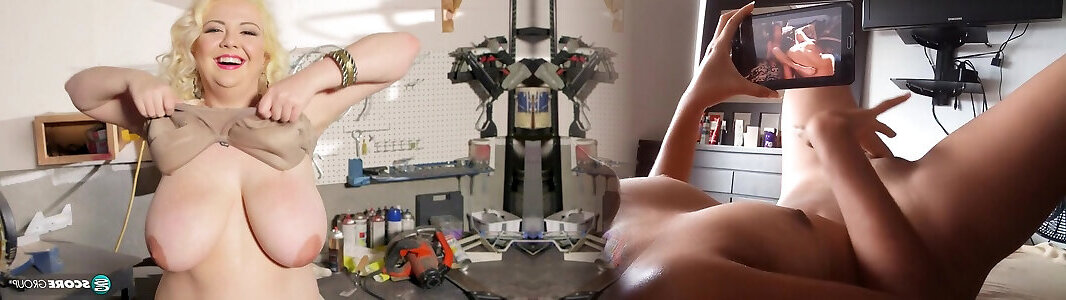 2 Youthfull Man Tempt Monstrous Knocker German Cougar to fuck in Workshop
