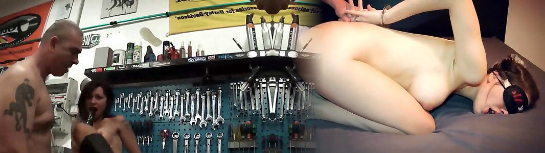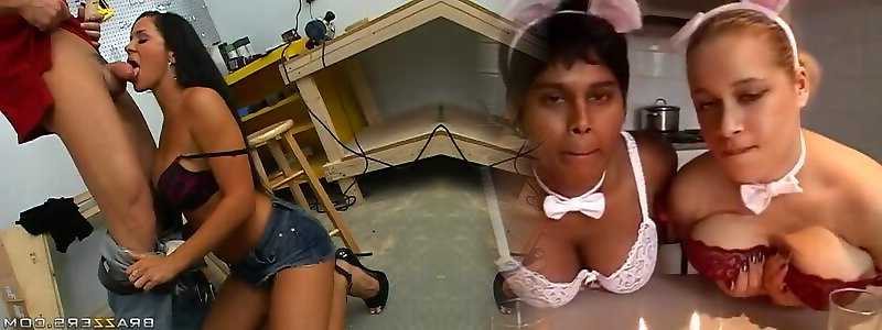 Bitchy dark haired tramps fellating a mans knob in his workshop