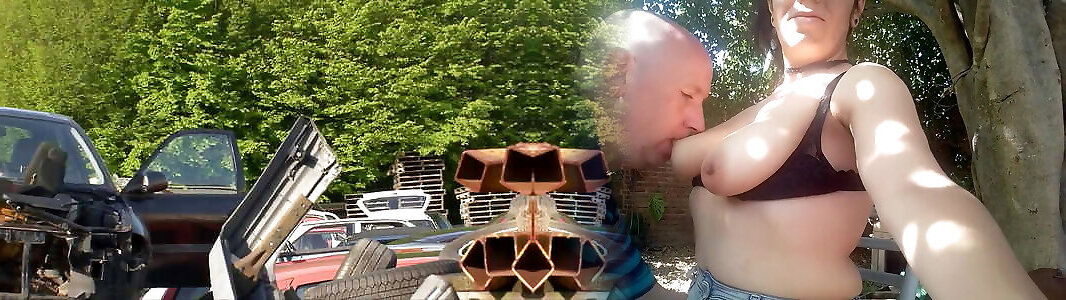Blowjob at the jankyard and fucking on the hood of the car