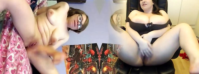 Bare nerdy brunette bangs herself with fake penis