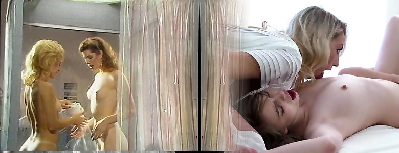 Girl-on-girl bathroom activity with fabulous Nina Hartley