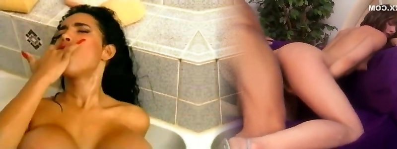 Kissing lezzies in bathtub – finger fuck and dildo game