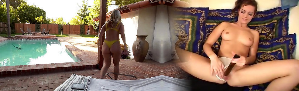 Messy bisexual 3some by the pool with platinum-blonde Lisey Saucy
