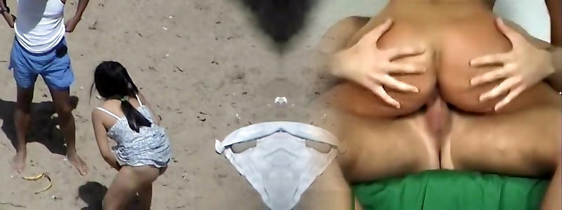 Dark haired gal stagged urinating on the beach