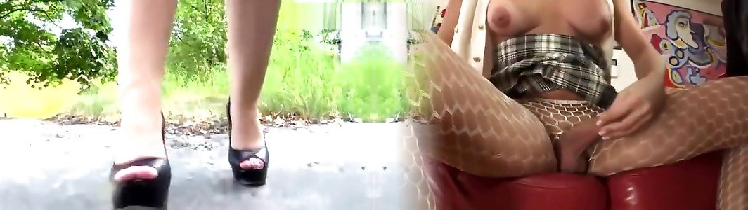 Irina outside kicking roaches in sharp stellar high high-heeled shoes.
