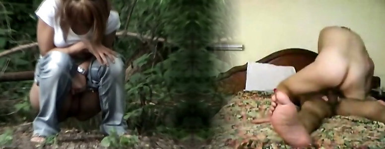 Girl peeing outdoor gets her cunt voyeured in close up
