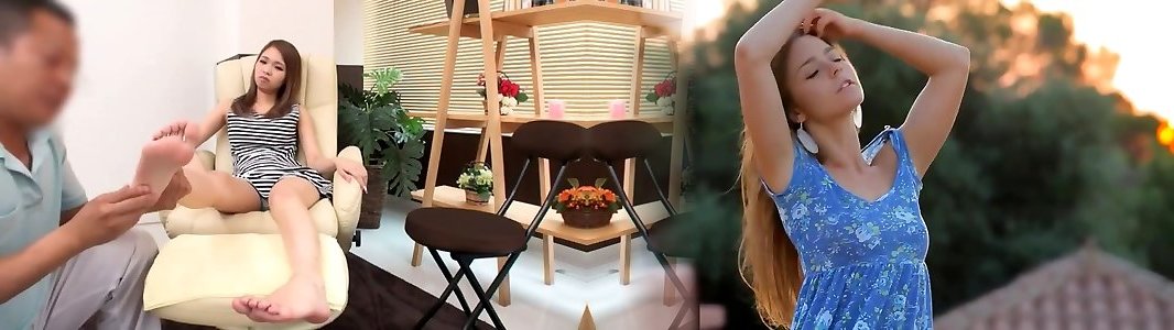 Asian damsel gets her thong raw while touching her feet -Two