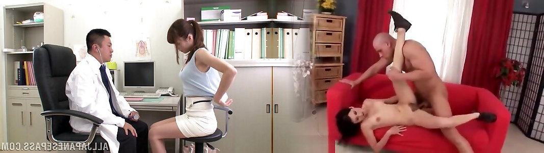 Japanese therapist studies her boobies and puss and nails the doll