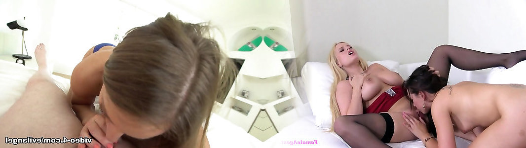 Lesbians in underwear trying cock in group sex