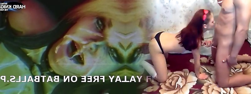 Unexperienced horny teen brunette with big ass gagging huge cock