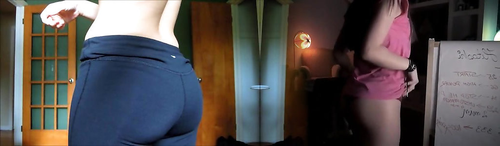 perfect obese rump en drag yoga pantalones! cameltoe & amp; g-string!