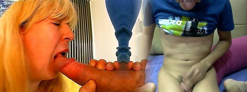 stepmum enseña a la chica a chupar la polla
