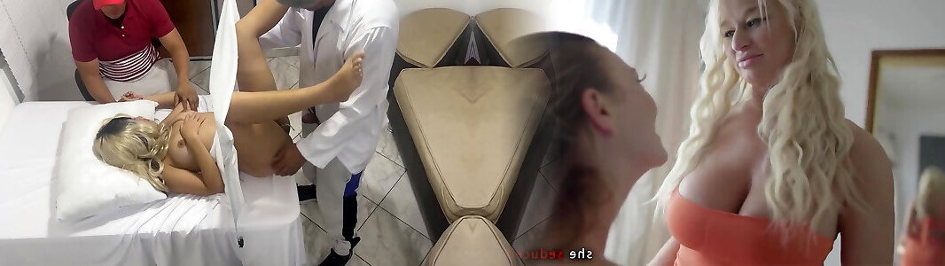 pervertido se hace pasar por médico ginecólogo para follar a la bella esposa junto a su tonto marido en una consulta médica erótica